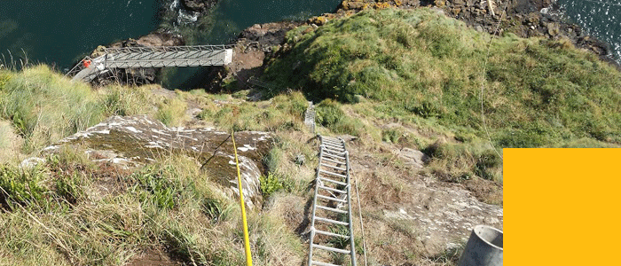 AW Solutions had an initial brief from McLaughlin & Harvey marine and civil engineering contractors to identify a suitably resourced and experienced specialist structural access sub-contractor to undertake the installation of 18 suspended footbridges on the high profile historic Gobbins Coastal Path (steep cliff face) in Co Antrim, N. Ireland.
