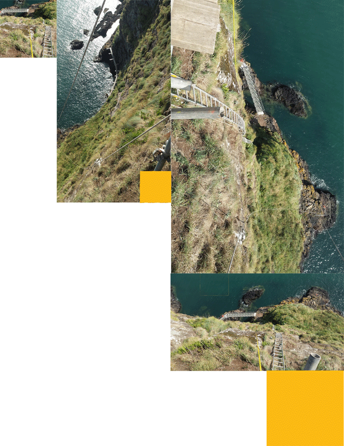 The main challenge here was to install suspended footbridges, supported by anchoring into the basalt rock face, some 10 – 20 metres above the crashing waves on a cliff face that varies between 40 – 55 metres in overall height.